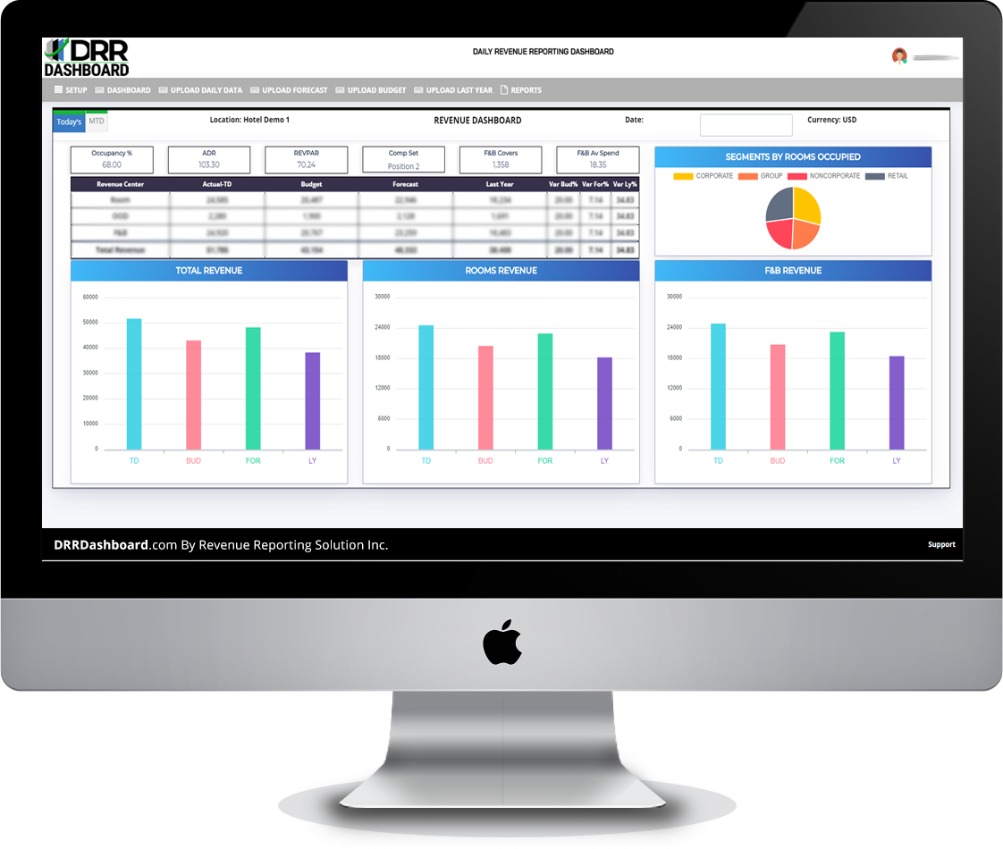 We have automated your reporting and made is very simple; just upload date from any PMS-POS system after night audit and your Daily Revenue Report Dashboard is ready.